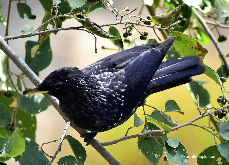 I would be drawn towards this loner by its loud and long human sounding whistle. A juvenile and an adult frequented the area, one often found foraging on the ground for insects while the other could be spotted serenely perched on the fence after having picked wild berries from a tree. Though the thrush sounded pleasant enough, I don’t know why but it somehow always projected a forlorn and plaintive feeling to me.