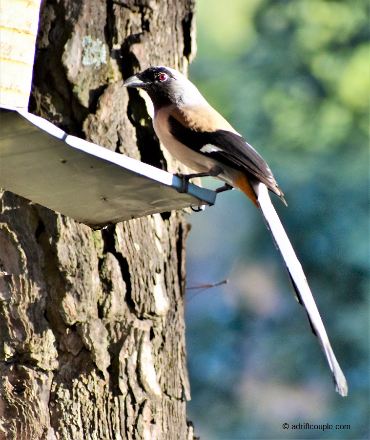 Where I was staying, the Rufous Treepies would regularly frequent the birdhouse. They would aggressively swoop down scaring away the smaller avians and pick the grains and crumbs rowdily. Though its colors varied from shades of black to rust to dark blue to white, I wouldn’t term it as a colorful bird because of a lack of bright hues.