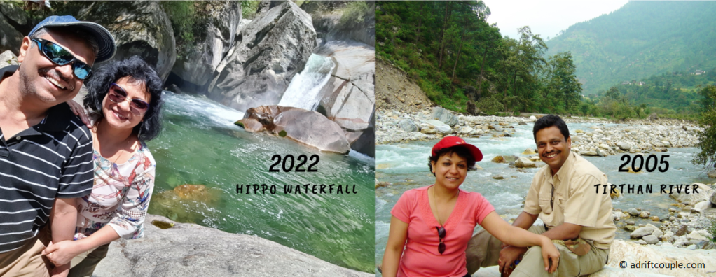 We, The Adrift Couple, were returning to Tirthan after a hiatus of 17 years having first discovered the valley in 2005. We had lodged in Nagini then, which at the time, had very limited staying options; unlike now – the riverbank and hillsides being dotted with guesthouses, homestays and cafes.