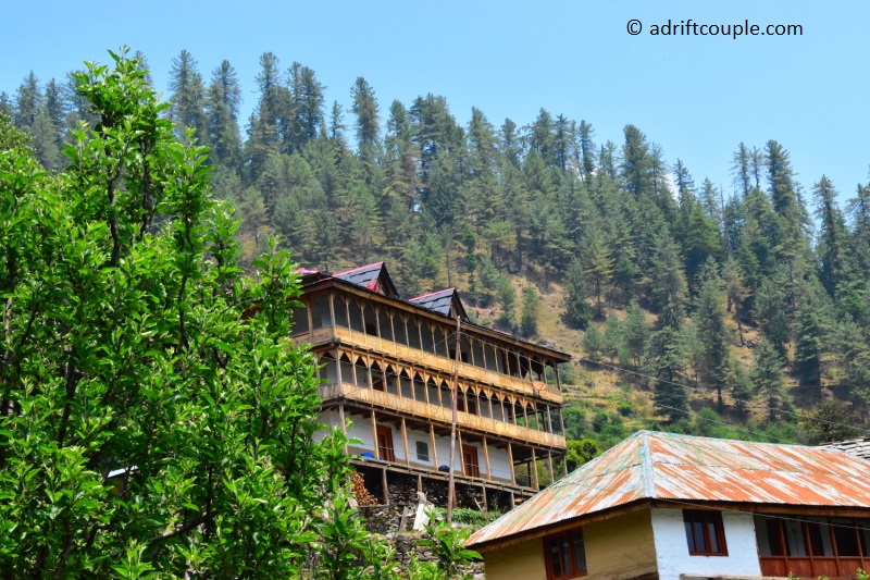 All the houses here are built in traditional Himachali style with space for fodder and animals below and the living quarters above for the owners.
